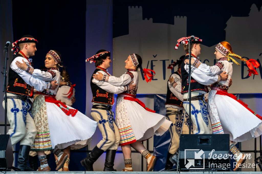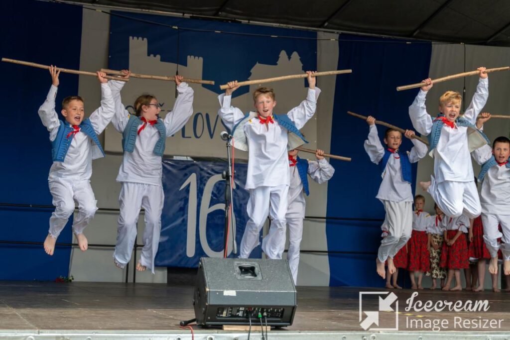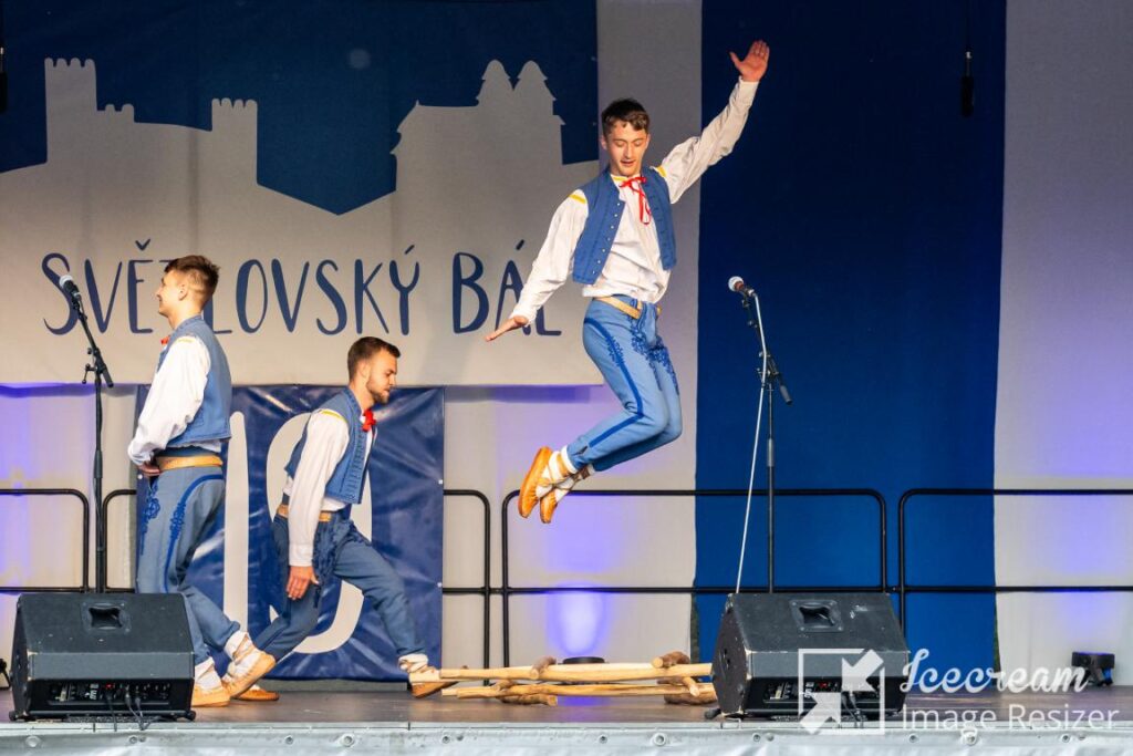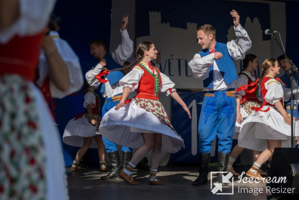 The main festival program is divided into a children’s program, Světlovský bál for children, and an early evening program made of performances of adult ensembles, followed by dance lessons and an evening with a cimbalom band. The whole event is accompanied by a fair of folk products and crafts promoting the Bojkovsko microregion. Visiting groups also get to know the history of the city, have the opportunity to visit the Bojkovsko Museum and the Nový Světlov castle, and also have a guided tour of the spa town of Luhačovice and possibly a tour of the city of Zlín.